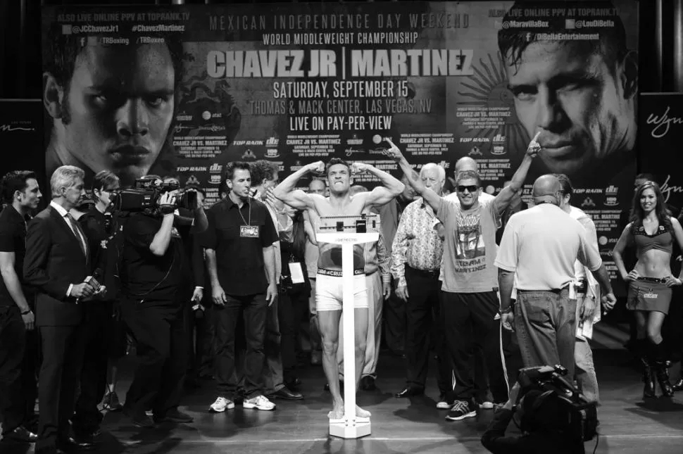 SHOWMAN. Martínez pesó 72,221 kilos; Chávez Jr marcó 71,667. El nacido en Quilmes revolucionó Las Vegas. TELAM