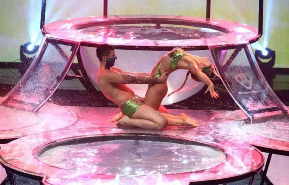 Charlotte Caniggia y Gabo Usandivaras, que reemplazó a Alejandro Gallo, que se accidentó, fueron los encargados de cerrar la presentación de coreografías de uno de los ritmos más complicados, el aquadance. Al finalizar, el hermano de Charlotte, Alexander, Dj Piloto y Maxi Diorio, se sumaron a la pista y le agregaron unos cuantos grados a la noche del viernes.