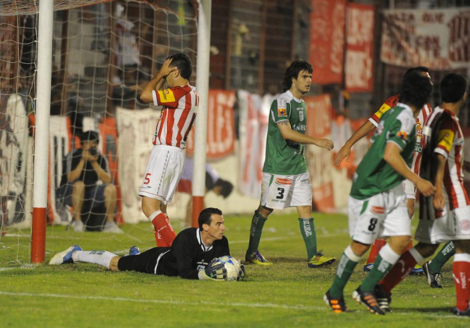 IMAGEN REPETIDA. Mauricio Levato se agarra la cabeza y Martín García se va tranquilo porque Barucco se quedó con una pelota difícil. El "santo" buscó siempre el gol, pero sólo marcó uno. LA GACETA / FOTO DE HéCTOR PERALTA