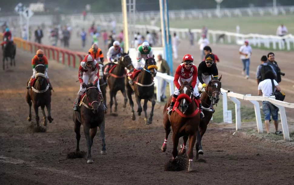 TAREA CUMPLIDA Y HAZAÑA CONQUISTADA. El alazán Incurable Rebel, con chaquetilla roja y estrellas blancas, cruza el disco con claras ventajas a su favor y con su jinete, "Maxi" Marrades, festejando sobre su montura. LA GACETA / FOTOS DE FRANCO VERA