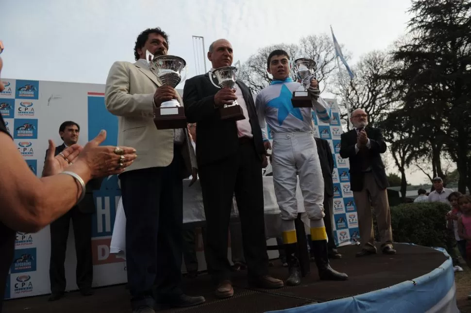 "La Polla es la competencia que uno siempre sueña con ganar y por suerte esta vez se me dio. Esto se lo quiero dedicar a todo el equipo que trabaja con el potrillo y a la gente que confió en mí", expresó el jockey del ganador, mientras recibía las felicitaciones de sus seguidores.