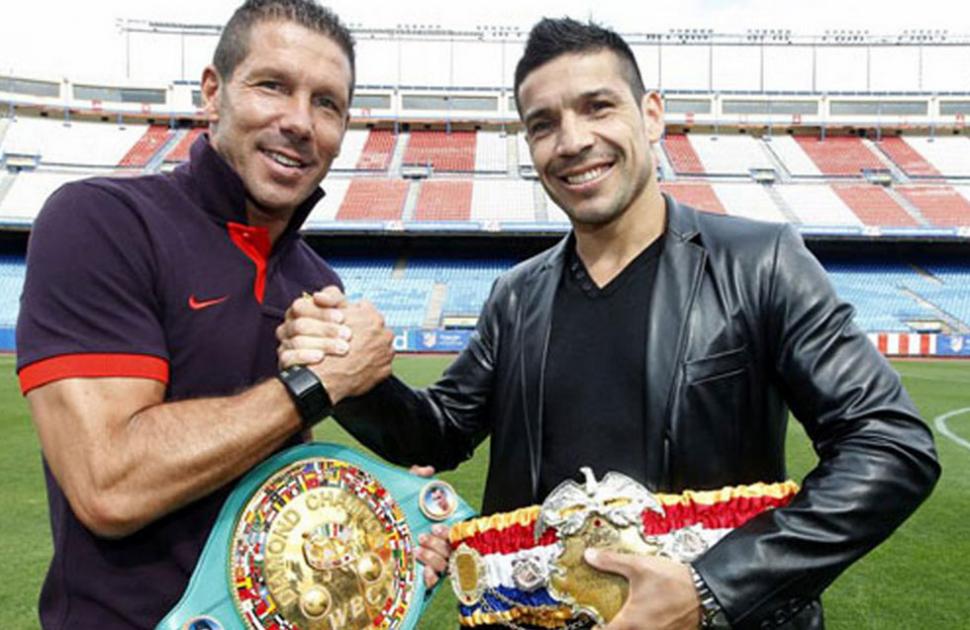 MADRID, España.- El cinturón de campeón mediano le sienta bien a Sergio "Maravilla" Martínez, que sigue sacándole el jugo a su victoria sobre Julio César Chávez Jr en Las Vegas y ya se aparece hasta en la sopa. Ya instalado en Madrid, el boxeador argentino fue a visitar a Diego Simeone y en el Vicente Calderón se prodigaron elogios.