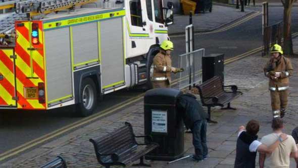 ABERDEEN, Escocia.- Un hombre tuvo que ser rescatado por los bomberos después de haberse quedado atrapado en un buzón de basura en la que había metido la cabeza.