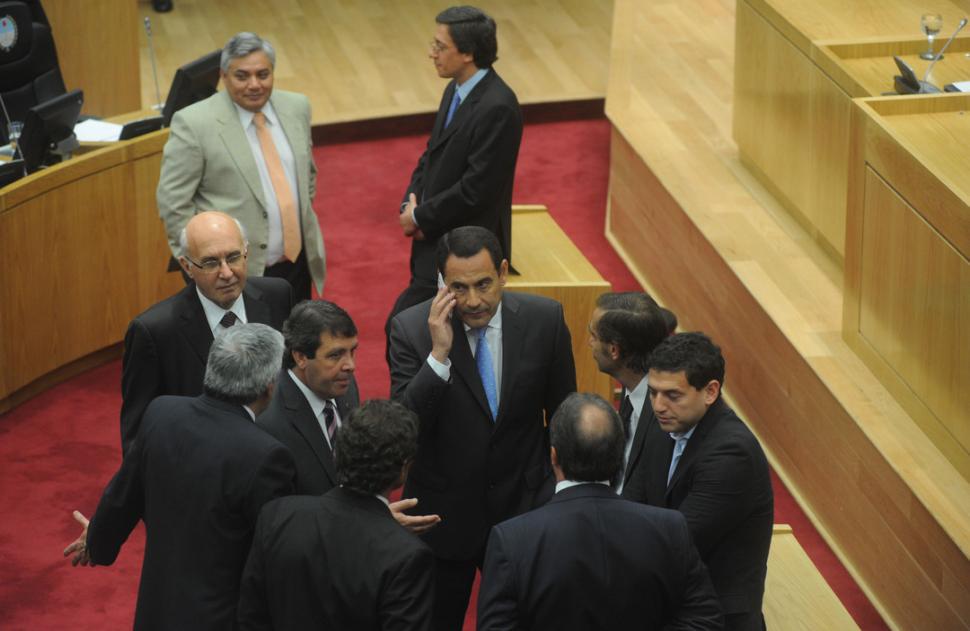CUCHICHEOS OFICIALISTAS. Amado habla por celular mientras siete legisladores del PJ analizan el embate opositor. LA GACETA / FOTO DE FRANCO VERA