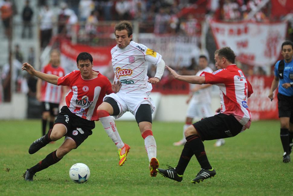 ALENTADOR. Fue el primer tiempo que jugó Patricio Rodríguez que acá es marcado por Patricio Berardo. LA GACETA / FOTO DE FRANCO VERA
