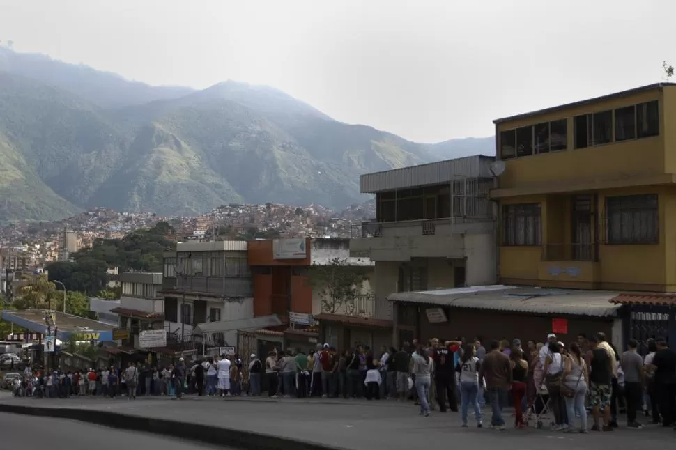 EN CARACAS. Una larguísima fila de votantes aguarda su turno para ingresar en un centro de votación. Un poco más del 80 % de los venezolanos concurrieron a sufragar. Fue un récord. REUTERS