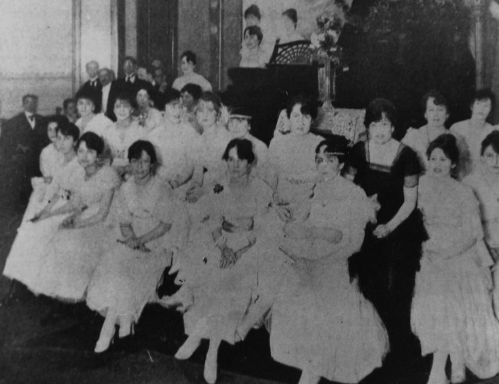 DOCUMENTO DE EPOCA. Una postal de comienzos de siglo. Damas tucumanas, en un retrato tomado en 1912. La crónica de entonces muestra una mujer sociable, dedicada -escribe el cronista- a "ese inocente sport que es el flirteo".