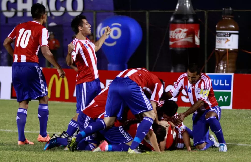 DESAHOGO. Los paraguayos celebran el tanto de la victoria. REUTERS. DESAHOGO. Los paraguayos celebran el tanto de la victoria. REUTERS.