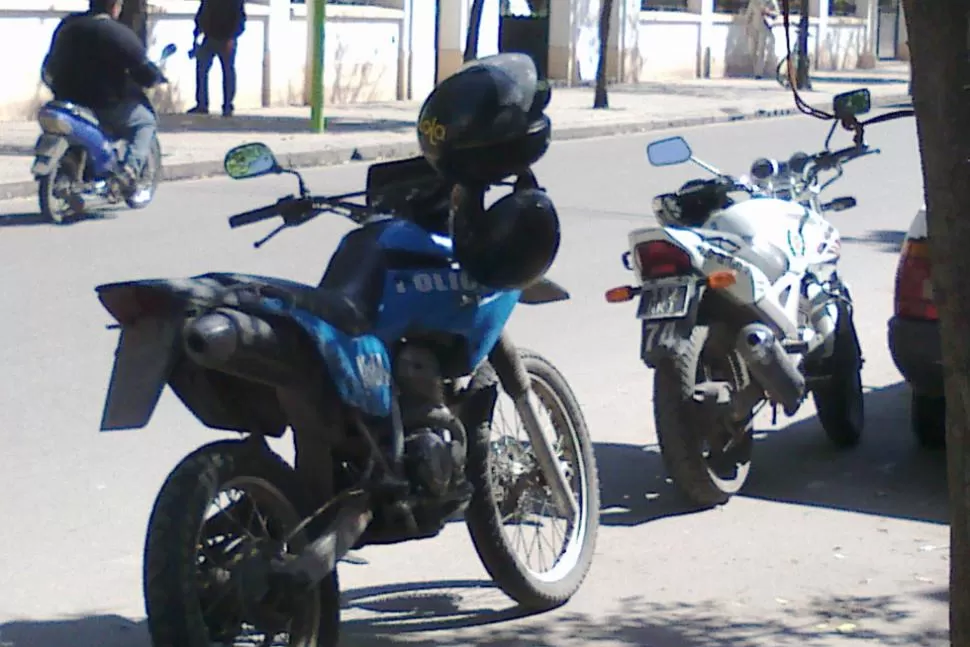 "En la esquina de Ayacucho y Lamadrid, en la puerta de la UNT, estos personajes estacionan donde quieren y ante la presencia de quienes deben hacer cumplir las exigencias de tránsito. Sin patente ni guiño, la moto azul de la policía. La moto blanca es de la policía municipal".