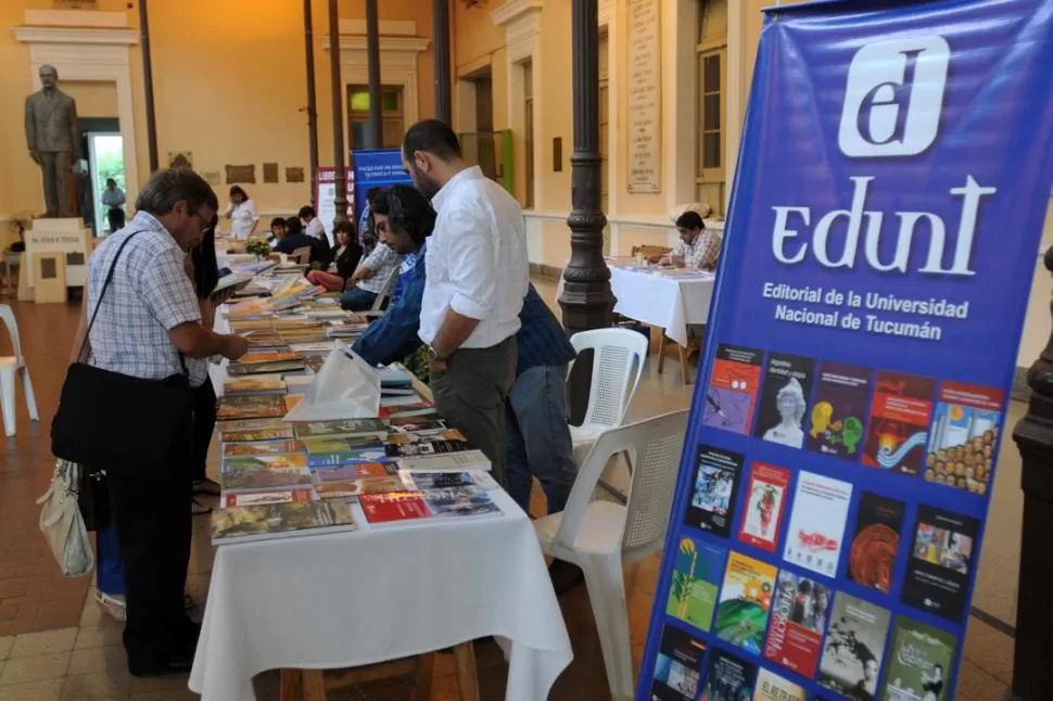 ¡A LEER! En el patio del Rectorado, Edunt expone una gran cantidad de libros de distintos formatos. LA GACETA / FOTO DE INES QUINTEROS ORIO