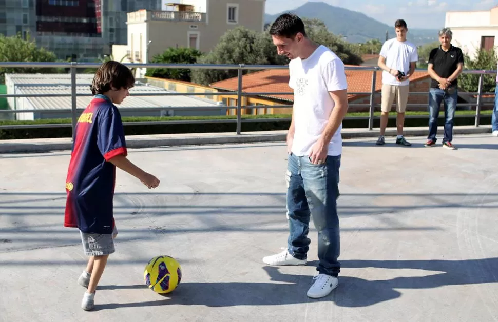 Allí, el rosarino y el pequeño futbolista, que a pesar de su incoveniente tiene un talento natural, pelotearon y prometieron volver a encontrarse en el mundial de Brasil de 2014.