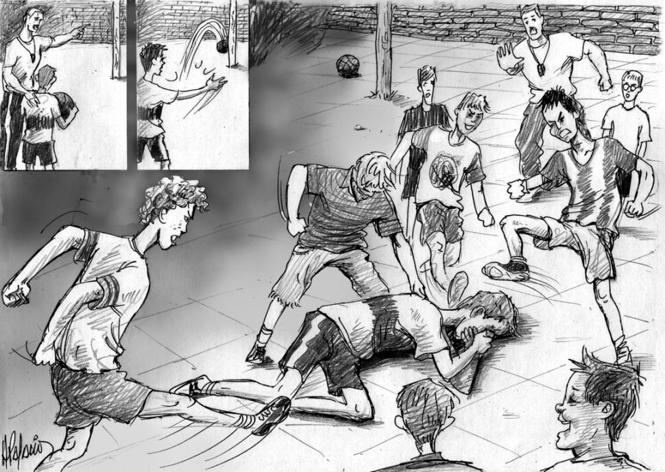 Todo comenzó como un juego, pero terminó mal. Los alumnos empezaban una clase de gimnasia en la escuela Ricardo Jaimes Freyre, ubicada en San Andrés. El profesor de Educación Física convocó a los chicos al patio. El juego consistía en lanzar una pelota hacia un poste a una cierta distancia. El que acertaba en el blanco sumaba un punto y el que no acertaba debía someterse a "un capotón furioso".
