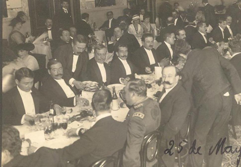 COMIDA OFICIAL EN TUCUMÁN. En 1914, todos los asistentes llevaban frac. Todavía no había empezado a aparecer el "smoking". LA GACETA / ARCHIVO