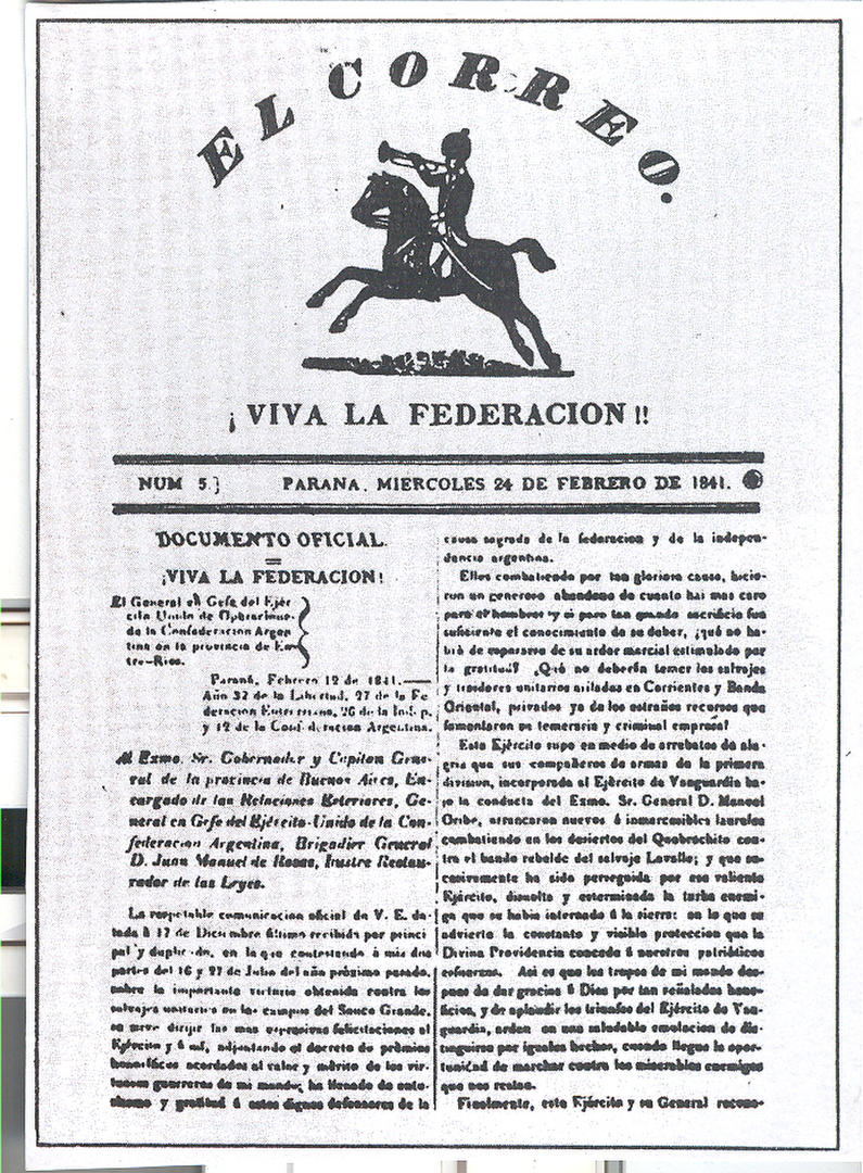 TIEMPOS DE ROSAS. Portada de una edición de "El Correo", que se publicaba en 1841 en la ciudad de Paraná. LA GACETA / ARCHIVO