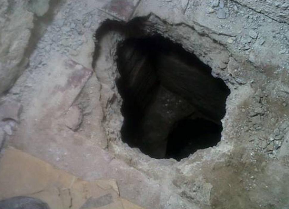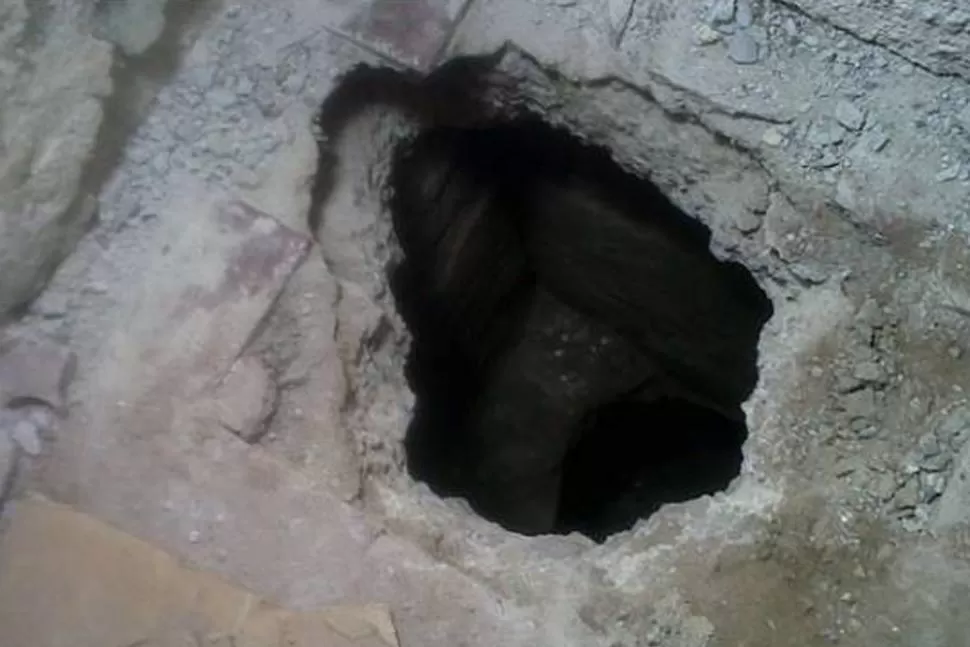 El boquete tenía 3,5 metros de profundidad. La tierra era escondida en bolsas de tela, en el mismo hueco.