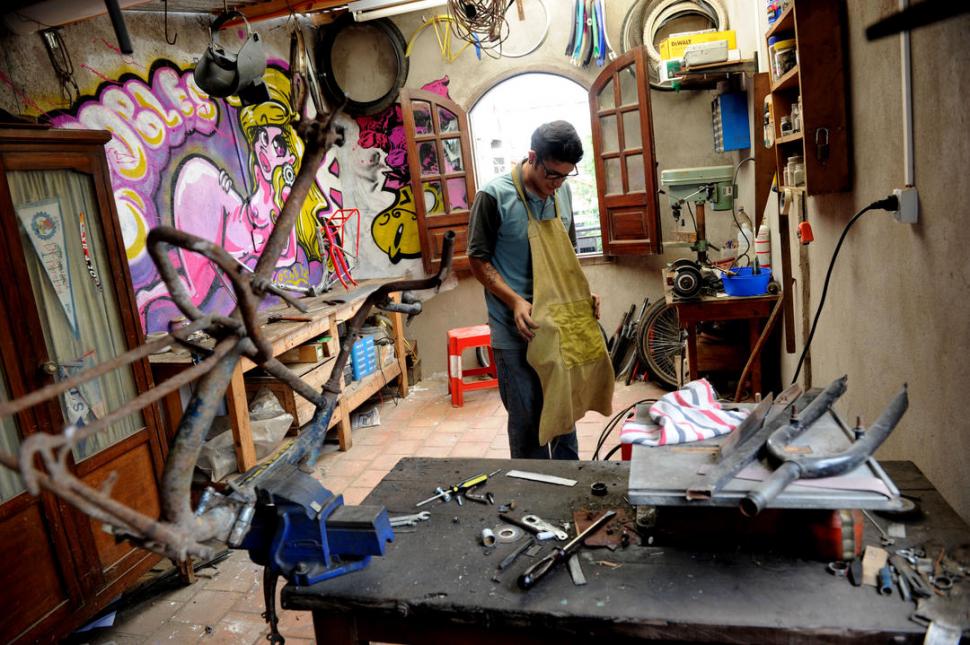 En contra de las tendencias que proponen subirse a la bici para descubrir lugares inexplorados y encontrarte con la naturaleza, el ¿bicicletero? Gonzalo Robles (28) se preocupa por la comodidad del paseo urbano, por el color y porque la máquina sea lo más acorde con el gusto y la personalidad del dueño. Por eso, antes de recibir el pedido exige que le pongás un nombre; y si no se te ocurre, lo pone él, pero la bici sale del taller bautizada. "Lo que hacemos acá es arte. Cada bici es una obra irrepetible, no pueden salir dos iguales", dice el estilista.