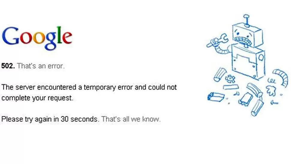 SIN SERVICIO. Google había anunciado la caída de GMail. CAPTURA DE PANTALLA / GOOGLE.COM