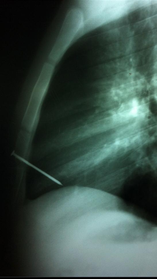 El clavo, de ocho centímetros de largo, había atravesado el esternón y el ventrículo derecho del corazón, y quedó alojado en la cavidad cardíaca. (Télam - DYN)