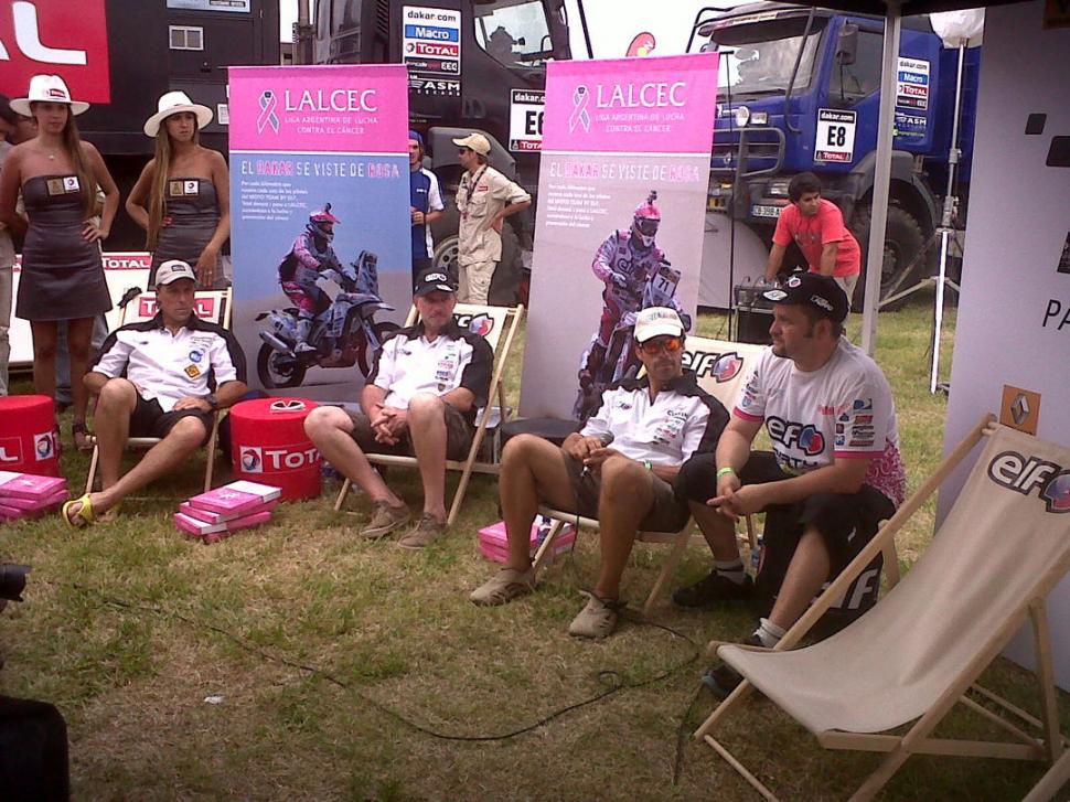Será la carrera más dura del mundo, pero no por eso no hay tiempo para una pausa. La tierra desaparece, las dunas dejan de ser el desafío que más se quiere superar y la meta ya no es sólo ganar. Pablo Busin, Eduardo Alan y el franco-uruguayo Laurent Lazard son parte del Moto Team By Elf que se unió a la Liga Argentina de Lucha Contra el Cáncer (LALCEC). Por cada kilómetro recorrido de cada uno el Grupo Total donará un peso para estudios gratuitos de prevención.