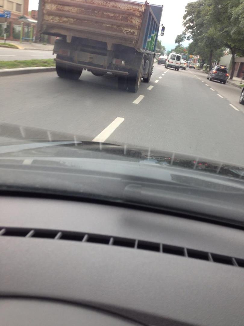El fiscal general ante la Cámara Federal de Tucumán, Gustavo Gómez, publicó en su perfil de Twitter (@fiscalfederal) la foto de arriba. "Camión de la muni Tucumán a 70 kmxh en Mate de Luna", tuiteó. En otro mensaje dijo que el conductor no había dejado pasar a una ambulancia.