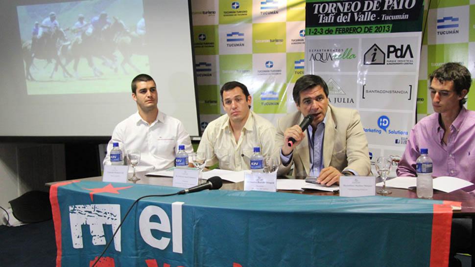El turno del Pato llegará al valle desde mañana y hasta el domingo en lo que será el XIIº Torneo de Verano "Tafí del Valle 2013". "Por primera vez en Tucumán estamos ante un torneo de valoración máxima, de 10 a 20 goles de ventaja. Estamos muy contentos de tener jugadores destacados, como Nicolás Taberna de 10 goles de hándicap, uno de los mejores del país", anticipó Federico Sassi Colombres, presidente de la Asociación Tucumana de Jugadores de Pato. Con entrada libre y gratuita, la idea es invitar a los interesados a disfrutar de un buen espectáculo y fomentar la práctica del Pato. "Es nuestro deporte nacional pero mucha gente no lo sabe", reconoció Maximiliano Martínez Márquez, representante de una las empresas organizadoras. "Es algo que no estamos acostumbrados a ver y mucho menos con un nivel como este", tentó Bernardo Racedo Aragón, titular del Ente Tucumán Turismo. La propuesta está realizada, hay promesa de un espectáculo diferente, pero bien argentino.