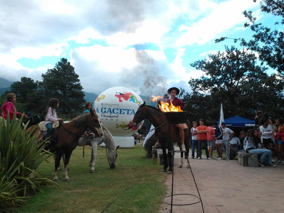 FUEGO OLÍMPICO. Francisco Padrós portó la antorcha olímpica y se trasladó en un caballo. FOTO GENTILEZA DE MARCO AVELLANEDA