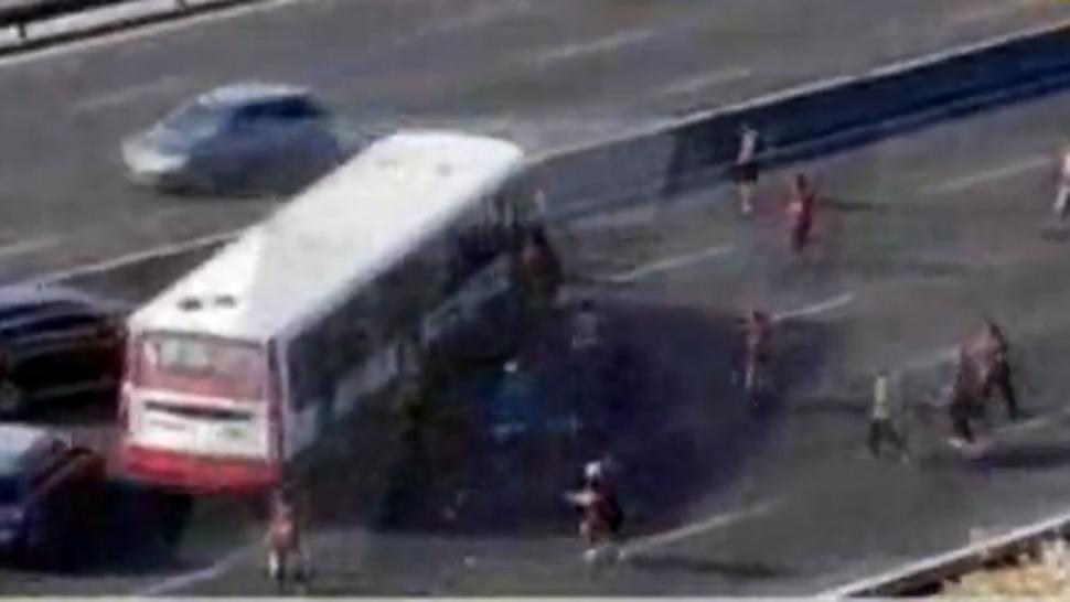 BUENOS AIRES.- Sucedió en plena General Paz, a unas horas del partido entre River y Colón. Un grupo de barras santafesinos decidió emboscar a un colectivo de línea, que trasladaba a algunos hinchas "millonarios". Fueron al menos 10 minutos de terror los que vivieron los pasajeros del transporte público atacado con piedras, en medio de la autopista que separa la Ciudad de Buenos Aires y la provincia.