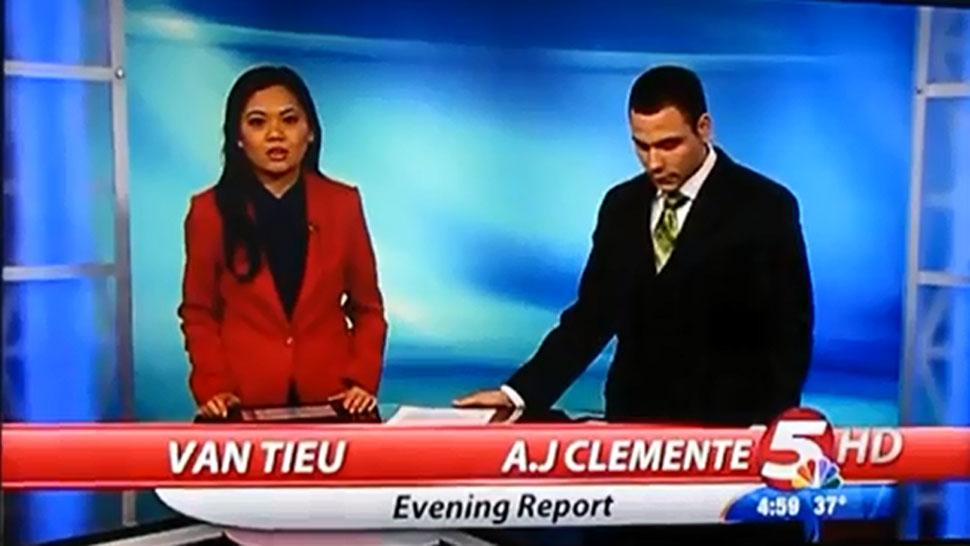 DAKOTA DEL NORTE, Estados Unidos.- Los nervios le jugaron una mala pasada al joven periodista AJ Clemente, que el día de su debut como conductor del noticiero de NBC fue despedido. ¿El motivo? Sus primeras palabras al aire en su nuevo puesto fueron “Sí, sí … ¡puta mierda!”