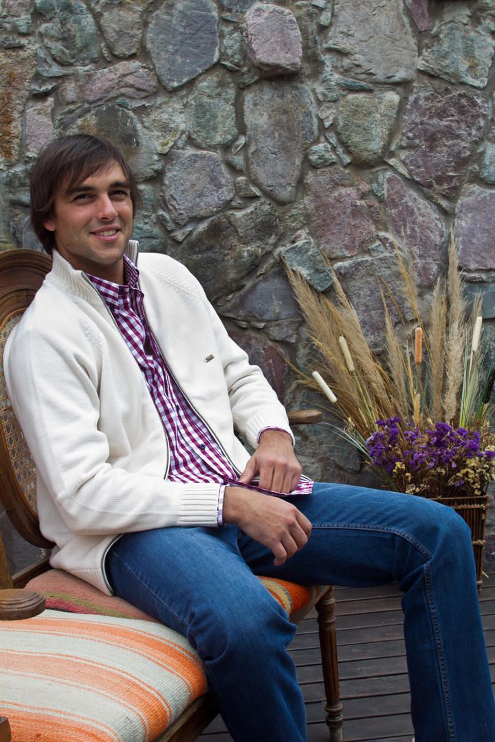 Campera algodón manga rangla $ 590, camisa manga larga a cuadros $ 390 y Jean $ 440 (La Argentina)
