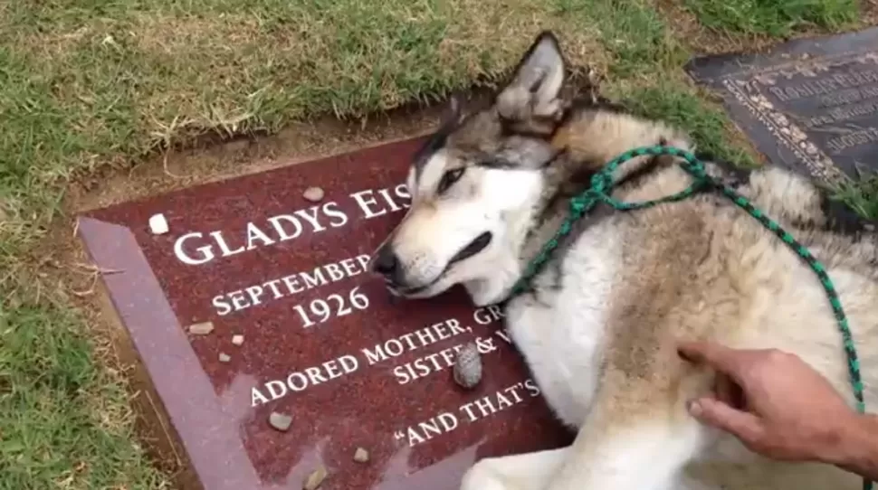Google. Un perro de raza siberiano, parece llorar desconsoladamente sobre la tumba de la abuela de su dueña, que capturó el emocionante momento para compartirlo en la
