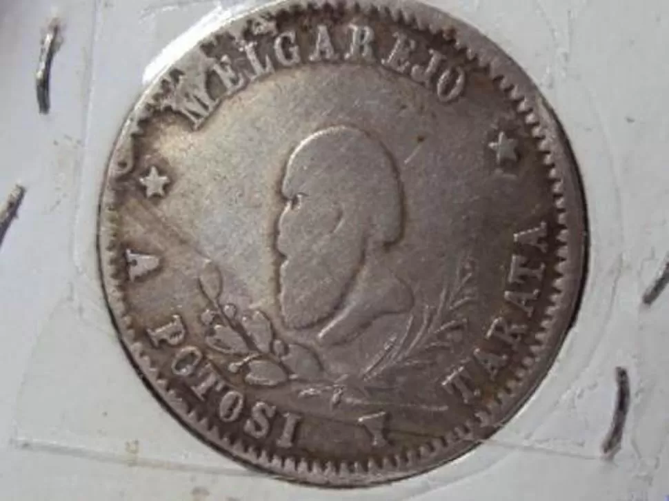 UN "MELGAREJO". Pieza de plata que se acuñó en Bolivia en1865 y que se usaba como medio de pago en Tucumán. LA GACETA / ARCHIVO