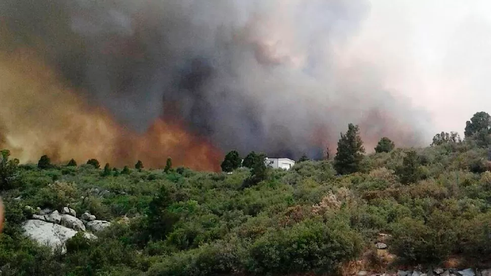 El incendio comenzó el viernes, aparentemente, por la caída de un rayo. El foco del siniestro se ubica en Yarnell Hill, a 135 kilómetros al noroeste de Phoenix. Se estima que las llamas ya han destruido la mitad de la ciudad de Yarnell. (DPA)