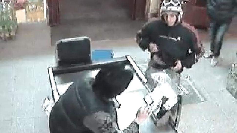 Uno de ellos se levantó la ropa para mostrar un arma y se metió en el bolsillo el celular del cajero que, sorprendido, abrió la caja registradora para que se puedan llevar la recaudación.