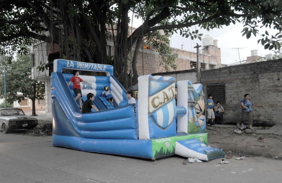 ESTÁN CHOCHOS. Los niños, fanáticos de Atlético, disfrutan dentro del castillo inflable decano durante una fiesta de cumpleaños en la capital tucumana. ESTÁN CHOCHOS. Los niños, fanáticos de Atlético, disfrutan dentro del castillo inflable "decano" durante una fiesta de cumpleaños en la capital tucumana.