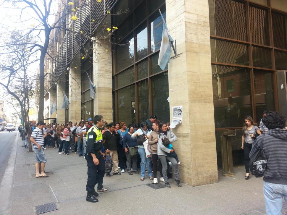 Un centenar de beneficiarios y clientes del Banco de la Nación, que habitualmente cobran sus asignaciones en el centro de pagos de Congreso al 200, debieron hacerlo en la sucursal central, ubicada en San Martín al 600, en la capital tucumana. Fue después del mediodía de ayer, tras permanecer varias horas de la mañana sin poder gestionar que se la abone la mensualidad. La tensión fue acumulándose debido a las demoras en la atención al público. "Había cientos de personas y sólo dos cajeros funcionando", coincidieron los clientes, mientras formaban una fila de casi 50 metros para poder ser atendidos. Comentaron que llevaron adelante un corte de calle en la oficina de Congreso al 200 como protesta y que a partir de esa acción fueron reasignados hacia la casa central. El miércoles y el jueves últimos, empleados del banco realizaron paros durante varias horas por demandas laborales.