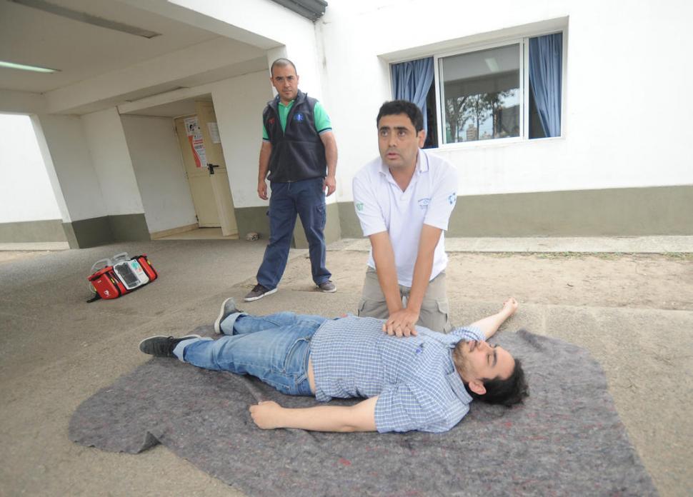 TÉCNICA BÁSICA. Los enfermeros Daniel Jiménez y Hernán Fernández explican cómo se debe hacer un RCP.