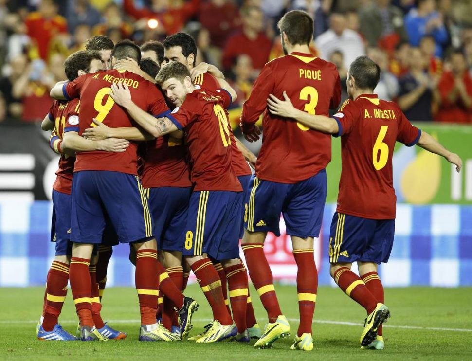 ACÁ ESTÁ EL CAMPEÓN. España celebra la clasificación a Brasil, luego de un triunfo sin sobresaltos frente a Georgia. La furia, que ganó su primer Mundial en Sudáfrica, se planta como uno de los candidatos a la final del 13 de julio en el Maracaná. ACÁ ESTÁ EL CAMPEÓN. España celebra la clasificación a Brasil, luego de un triunfo sin sobresaltos frente a Georgia. La "furia", que ganó su primer Mundial en Sudáfrica, se planta como uno de los candidatos a la final del 13 de julio en el Maracaná.
