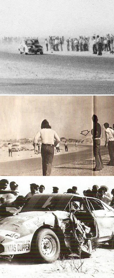 Media hora más tarde, Estéfano se aproximó a la curva de ingreso de Aimogasta y no pudo detener su marcha. El coche siguió casi derecho y comenzó a dar tumbos, seis según los testigos. La jaula de seguridad no resistió los golpes y el cuerpo de Nasif salió despedido.