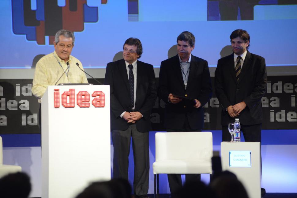 DISCURSO. Habla Miguel Blanco, titular de IDEA. A su lado, Gustavo Pulti, intendente de General Pueyrredón, y Jorge Goulu, presidente del 49° Coloquio. IDEARED.ORG/