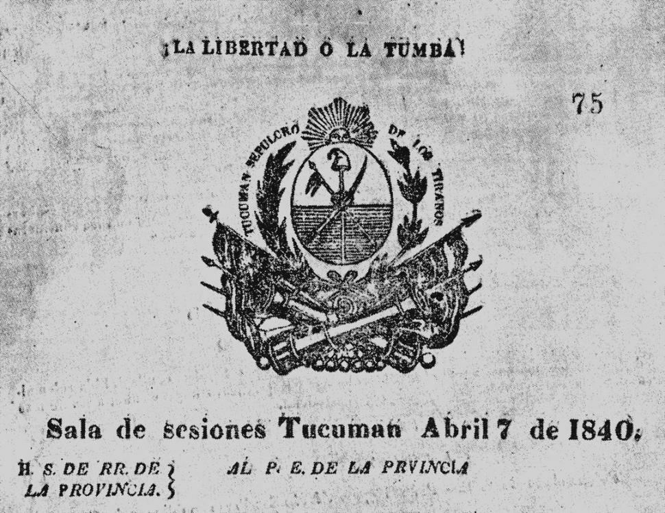 LA LIGA DEL NORTE. Cabeza del impreso en hoja suelta que transcribía el pronunciamiento de la Legislatura de Tucumán contra Rosas. LA GACETA / ARCHIVO