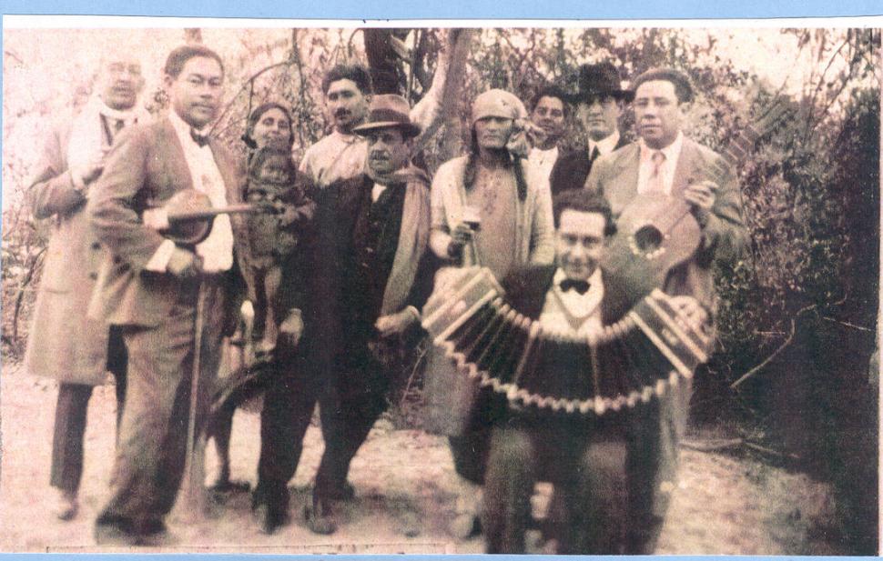 REUNION CAMPESTRE. En esta foto de fin de los años 1930, posan los músicos con violín, guitarra y bandoneón, en Potrero de las Tablas. LA GACETA / ARCHIVO