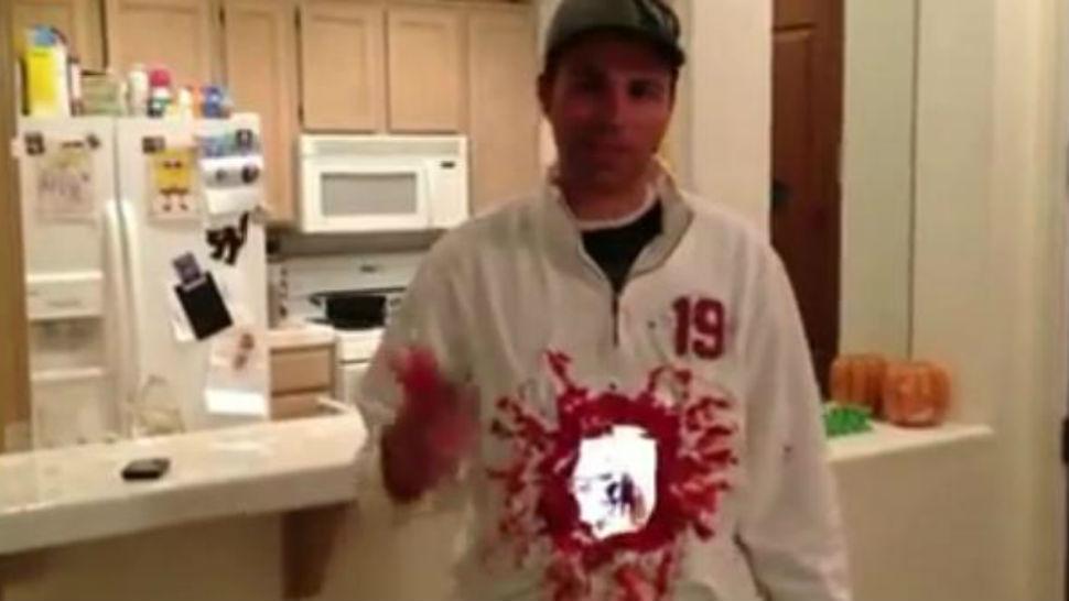 El ex empleado de la NASA, Mark Rober, se ató una tableta iPad en la parte frontal del torso y otra en la parte trasera y las sincronizó con la aplicación de videochat FaceTime.