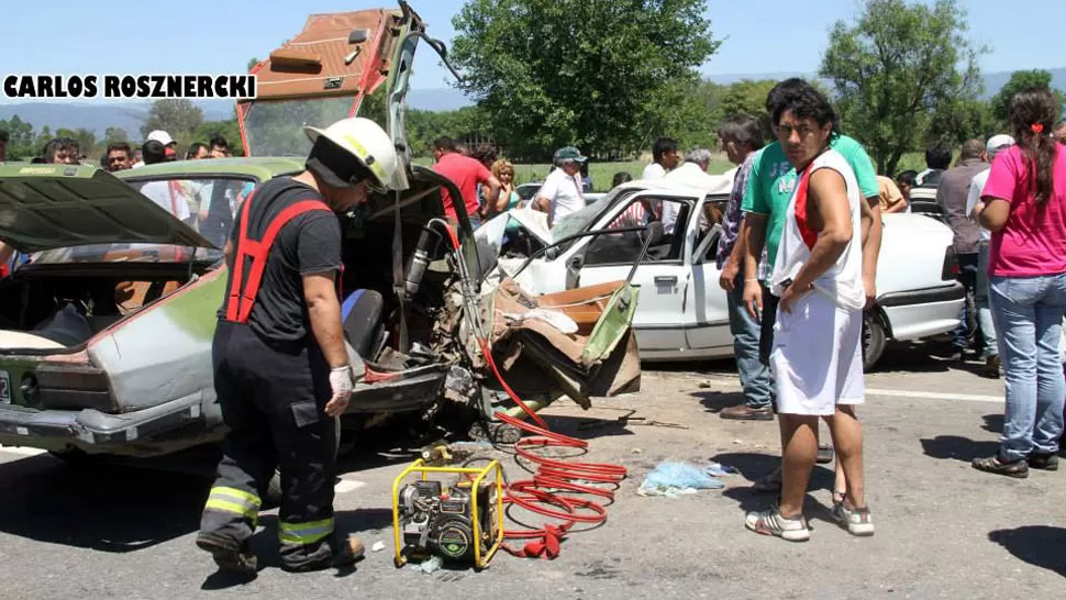 La colisión se produjo cerca de las 11 en un tramo recto conocido como La Mora. Ahí el Renault 12 que iba al sur salió de su carril aparentemente al reventar una rueda y chocó de frente con el R19 que venía en sentido contrario.