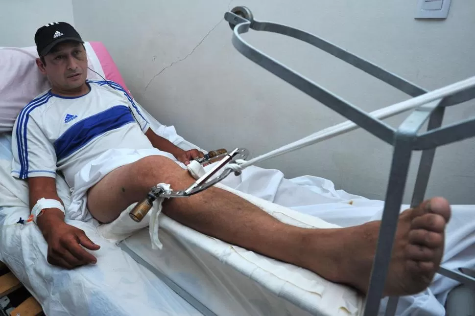 El sargento Antonio Díaz sufrió la fractura de una pierna el miércoles de la semana pasada, luego de que lo golpearan en el acceso Norte