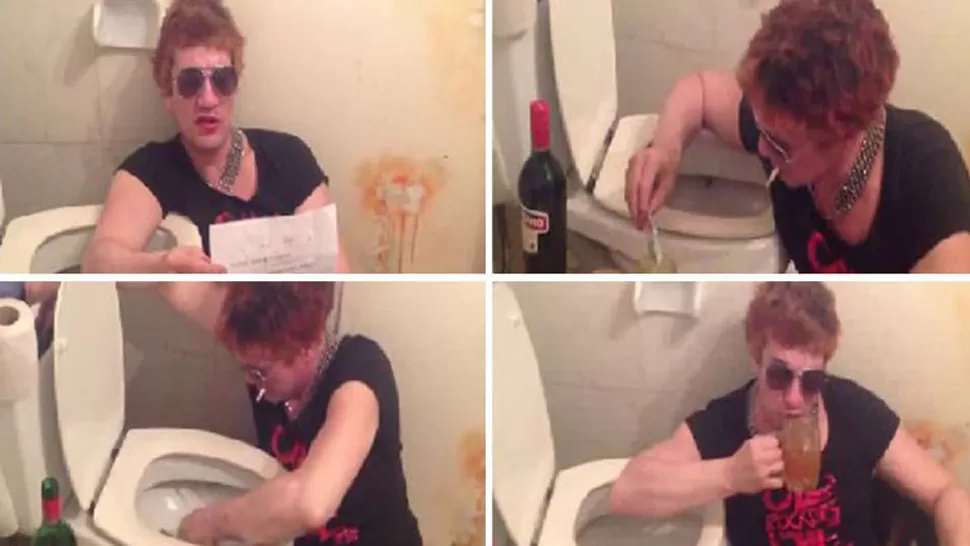 El cantante de "Viejas locas" presentó un video en el que arma la bebida en un baño sucio y se lo toma. Video.