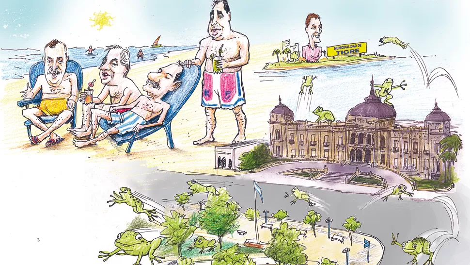 En el gabinete alperovichista todos piensan en 2015. Ya no hay presente, sólo futuro. Manzur se vende como el elegido de José. Beatriz Rojkés sabe que en cualquier momento puede ser víctima de las internas palaciegas en Buenos Aires, pero en Tucumán trabaja como si estuviera en campaña para ser gobernadora. Los legisladores e intendentes saben que después de los comicios del 27 no sobran los lugares en las listas y menos aún en las oficialistas. Cuando llegó el alperovichismo, si les daban un octavo lugar en la lista era seguro que obtenían una banca; ahora el quinto lugar ya es una utopía. En Tucumán el cupo femenino se ha convertido en cupo conyugal, pero también hay muchos que ya no tendrán posibilidades ni en las intendencias ni en la Legislatura. Esos son los que esperan ansiosos el regreso del gobernador. Alperovich no puede regresar y dejar que el desorden actual continúe. Su pérdida de poder hará la situación incontrolable y las ranas seguirán saltando.