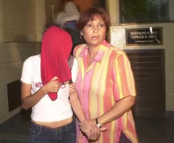 RUMBO A TRIBUNALES. Una de las prostitutas es sacada de un edificio.
