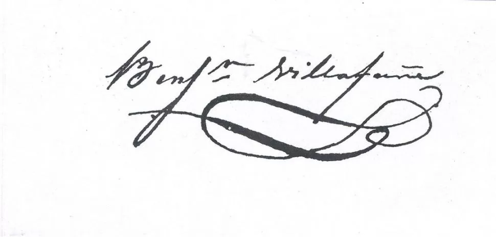 BENJAMÍN VILLAFAÑE. Firma del tucumano que fue gobernador, senador al Congreso y primer rector del Colegio Nacional. la gaceta / archivo