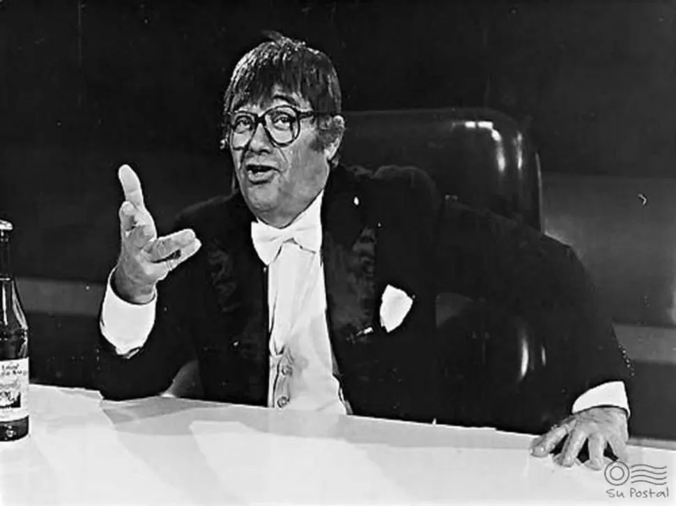 UNA IMAGEN CLÁSICA. La peluca y el frac eran infaltables en las pantallas de la televisión argentina los domingos, cuando Tato Bores estaba al aire. vamosalcine.com.ar