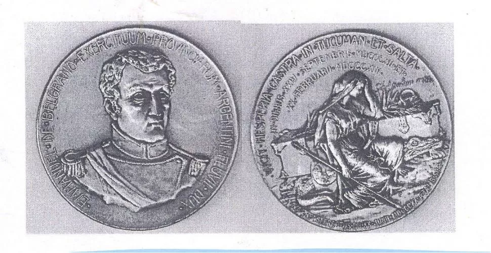 PIEZAS NADA CONOCIDAS. Medalla de homenaje a Belgrano acuñada en 1907, de acuerdo a un diseño de 1822. LA GACETA / ARCHIVO